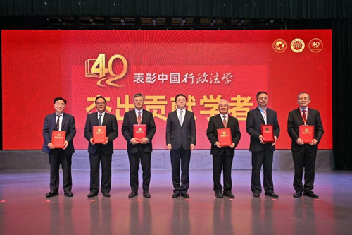 在行政法学研究会成立四十周年纪念活动中,姜明安老师荣获中国行政法学“杰出贡献学者”,展鹏贺老师荣获“中国行政法学四十年优秀成果”,2023级硕士研究生谷雨和2018级本科生石佳乐荣获第十二届“应松年行政法学奖学金”。