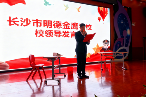 会议伊始,主持人程宸同学引入本次活动的主题“预防未成年人犯罪”并介绍到场嘉宾。金鹰小学副校长邓亚东进行发言,他强调了法律离我们并不遥远,倡导同学们做认真的学习者、文明的参与者、坚定的践行者。随后,全体师生庄严进行宪法宣誓。