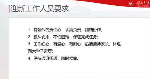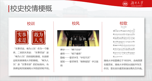 通过对地理位置与办学历史、校徽、校训、校风、校歌的回顾及对现有学院、专业的介绍,美丽努尔老师从整体上向新生助理展示了千年学府湖南大学的校史校情。
