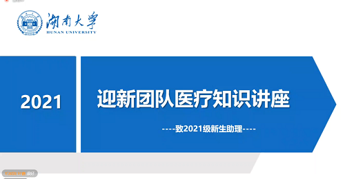 为提升2021级新生助理医疗知识储备,我校于2021年8月17日晚举办线上医疗知识讲座,讲座持续时间为1小时20分钟。本次讲座面向全校2021级新生助理,湖南大学健康教育教研室的朱艳玲老师主讲。