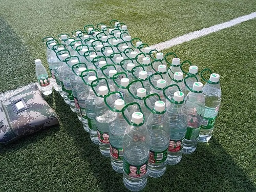 军训最讲究的就是规则意识,所有的动作都要有板有眼,不仅仅是前进的步履,连水瓶、军训服都要放得整整齐齐。