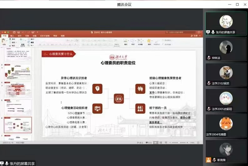 心理兼干张丹老师主讲,2019级、2020级、2021级本科生心理委员,2020级、2021级硕士研究生心理委员参加。