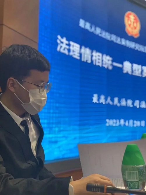 第一位分享的是赖若涵。赖若涵曾在最高人民法院司法案例研究院实习,担任联合培养实习生班长,并获得“优秀实习生”的荣誉称号。她首先简要介绍了国家法官学院和最高人民法院司法案例研究院的性质、职能以及实习保障,随后对自己参与的工作进行了介绍,如党建活动、司法案例课题研究、类案裁判规则研究、年度案例编审工作等内容,在这段充实的实习经历中,她不仅产出了研究成果,还感受到了政法机关直属单位的工作氛围,树立了大局意识,学习到了很多在课堂中难以学到的知识。