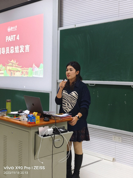 在辅导员总结发言环节,物电院辅导员李远庆老师鼓励大家在正确的时间做正确的事情,电气院热孜宛古丽老师希望同学们珍惜与同学们之间的友谊,互相学习互相进步,换妻