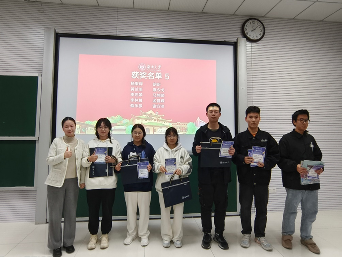 联合举办了“期中备考不孤单”活动,并于11月19日在湖南大学研究生院楼A201教室举行了颁奖典礼。本次颁奖典礼邀请了电气院热孜宛古丽老师、物电院辅导员李远庆老师、换妻