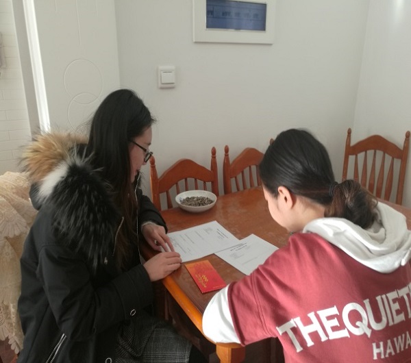 同样受到国家资助政策帮助的法学1504班陈安琪同学回到家乡湖北省荆门市京山县,并来到家庭困难学生家中,代表学校了解其家庭情况、宣传资助政策并送去新春的慰问。在京山县钱场镇向埠村李同学家中,陈安琪同学和一家人坐在一起包饺子、话家常。通过面对面的交谈,陈安琪同学了解了该家庭的基本情况,并得知李同学在校期间也凭借自身的刻苦努力获得了国家奖学金、浩芬奖学金等多项荣誉,帮助父母减轻生活压力。李同学的父母也表示:“非常感谢国家、学校对我们这些困难家庭的帮助,让我们减轻了不少负担,心里暖暖的。”