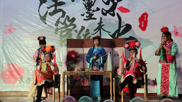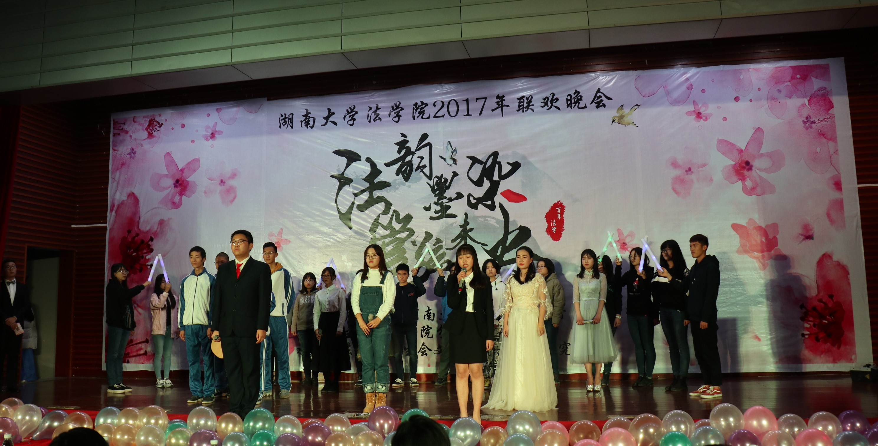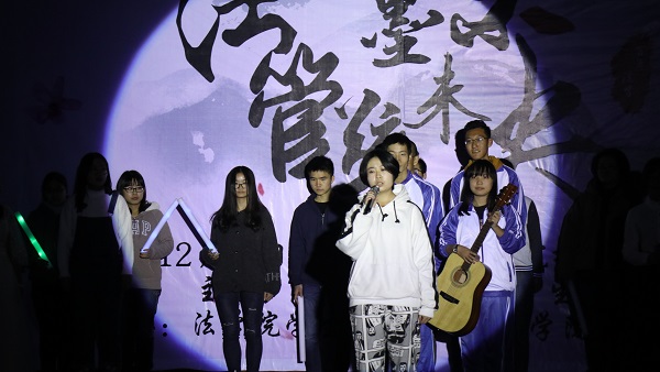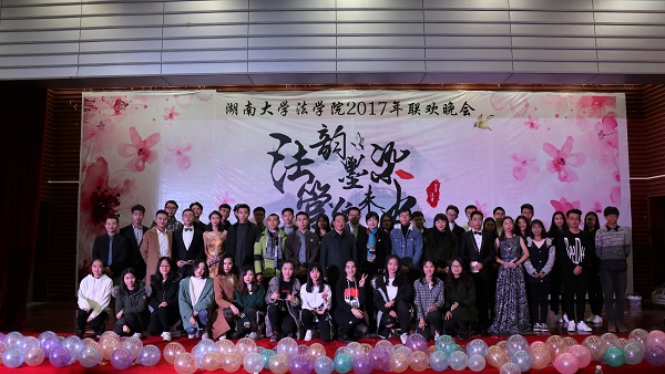 赫曦映岳麓山,青春跃星城,17级行管一班全体同学模仿高中时代的校园电视台,为观众们奉上了活力四射的舞蹈《悦动青春》,瞬间点燃了场内气氛。17级法学三班孙鹏翔、陈佳、马若琳等同学主演的舞台剧《法三的秘密》用cosplay的方式演绎流行游戏,精彩的表演为观众们带来了阵阵欢笑。情牵法韵,流年似水,17级法学四班的歌舞节目《四水年华》用华美的舞蹈与动听的音乐和观众们一同追忆似水年华、展望美好未来。有一种故事叫做爱情,有一种流行叫做穿越,17级行管二班苏哲豪、胡鑫雅等同学主演的话剧《假如爱有天意》将二者完美结合,描绘了一场唯美而有趣的爱情故事。