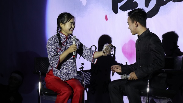 接下来,晚会进入了趣味横生的互动抽奖环节,观众们摇动手机,同主持人互动,抽取零食大礼包,现场气氛十分热烈。游戏过后,四位研究生带来了火热的舞蹈《Watch Boom》,引起现场阵阵尖叫。人生一世间,忽若暮春草,17级法学一班的同学们带来的歌曲串烧《给所有知道我名字的人》穿越时光,观众们伴随着往日的歌声与摇动的荧光,怀想着过去的“小确幸”。其后,17级法学二班带来的舞台剧《非诚勿扰小二班》别出心裁,将民族舞蹈、吉他演奏、相声小品巧妙结合,将一场意外不断的“相亲大会”呈献给了观众。爆笑过后,便是学院晚会的传统节目《新疆舞串烧》。来自全校各个学院的新疆学生受邀登上换妻