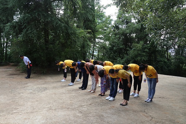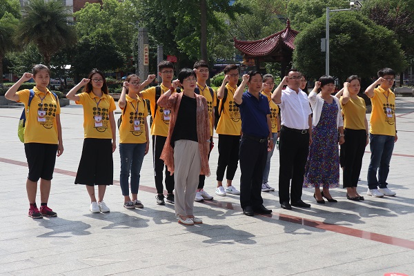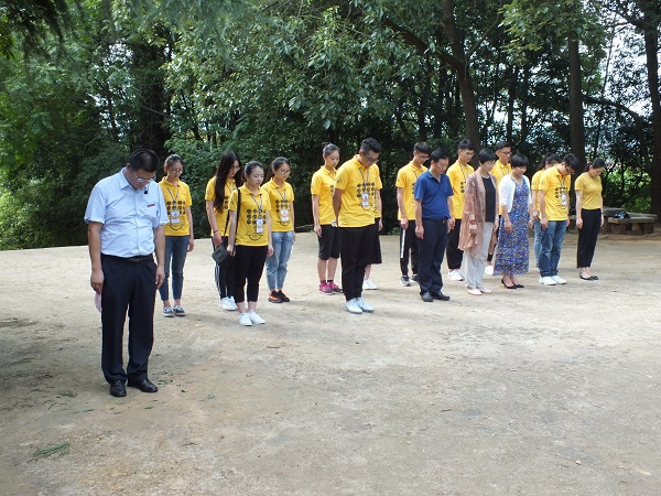 当天下午,“三下乡”社会实践团和李连友书记、付蓉芬副书记在双峰县委常委、组织部长陈群,蔡和森纪念馆馆长尹晓奔的陪同下参观全国青少年爱国主义教育基地——蔡和森同志纪念馆。在“蔡和森同志光辉一家”雕像前,全体师生肃立鞠躬,敬献花篮, 并面对庄严的党旗重温入党誓词。铿锵的誓词,坚定的誓言,表达着全体党员对党的无限忠诚和热爱。