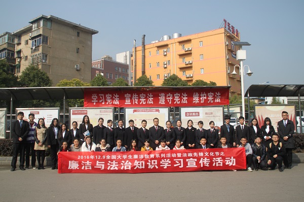 分团委、学生会和青年志愿服务团组成了廉政与法治知识宣传小分队携带《公民法律常识1000问》等普法书籍和同学们自己编印的宣传单,深入天马安置小区、科教兴村等地开展宪法知识与廉洁知识宣传教育活动,向周边居民普及法律常识,宣传廉洁知识。志愿者还在岳麓书院向来往的游客宣讲党的十八届六中全会精神,普及国家宪法日和国际反腐败日的相关知识,并组织了现场签名活动,得到了游客的积极参与和支持。