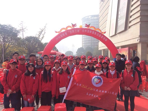 还组织60余名志愿者前往长沙市岳麓区王府井商业广场参加了2016年湖南省“法润三湘”公共法律服务志愿者活动,换妻