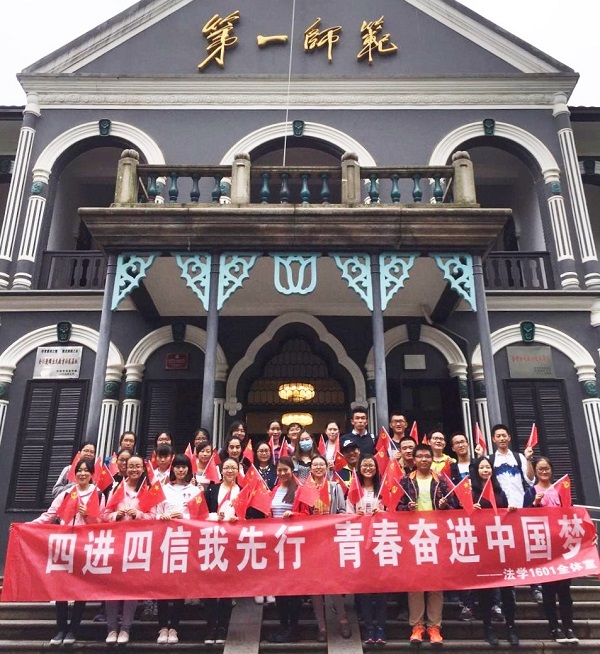 其中,法学1601、1603班怀古望今,参观了湖南第一师范旧址,激起了同学们担当起复兴中华重任决心和勇气;法学1601班开展了小型红歌会、诗朗诵、少年教育等“小活动”,使同学们在培育一代伟人的地方感受革命精神,明白自身肩负的责任;法学1602和行管1601、1602班都通过组织游览烈士公园来缅怀先烈,警醒后人,让大家在庄重与肃穆中感受今天幸福的来之不易,忆苦思甜;法学1604班的活动则层层推进,通过观影、游党史陈列馆和雷锋纪念馆和总结反思,使支部成员从学习者转变成为践行者与弘扬者,将八字箴言“勤学、修德、明辨、笃实”践行至生活的一言一行之中,让同学们产生做新时代“六有青年”的豪情;法学1605班通过主题班会学党史党情,了解党的革命斗争史,激发广大同学对党的无限热爱。
