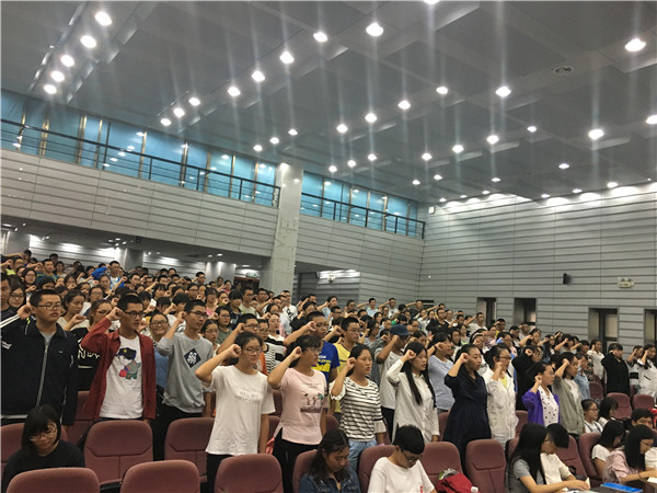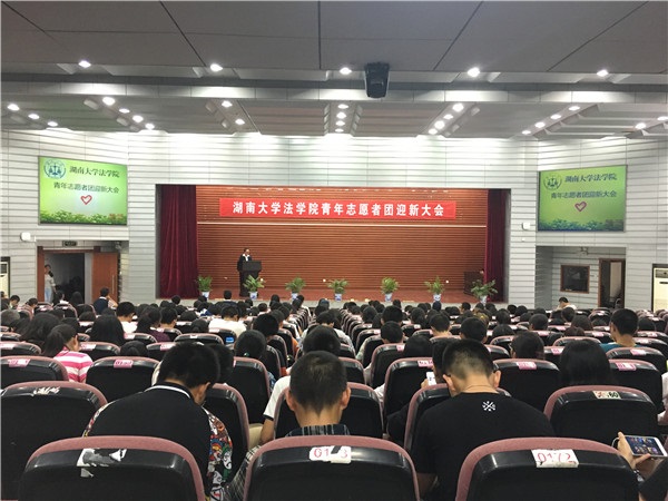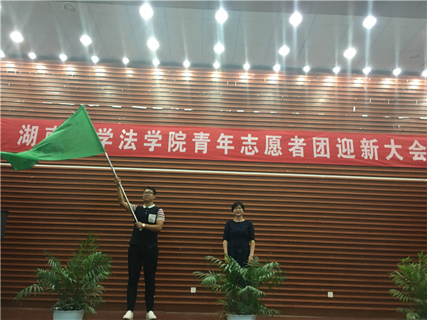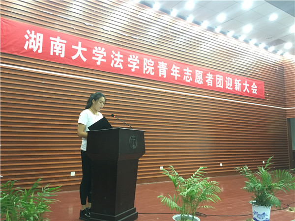 会议在庄严雄壮的国歌中开始。首先青年志愿者团副团长谭晓琴向2016级新生介绍了换妻