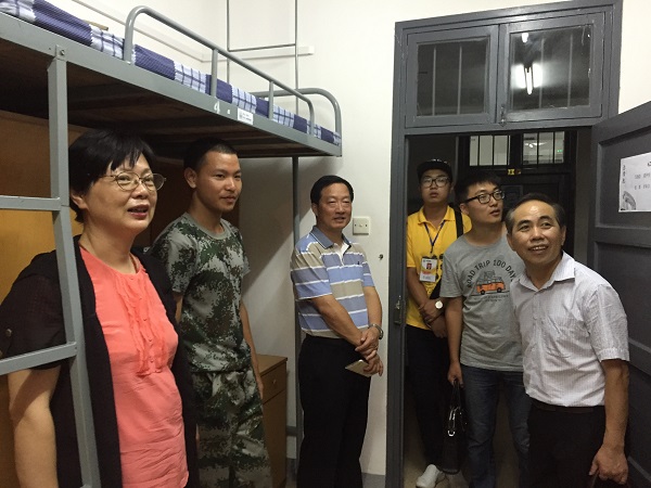走访完全部新生寝室已接近22点30分,屈院长和李书记向随行的迎新团队成员表示慰问,对同学们三个多月以来的辛苦工作表示衷心的感谢。付书记高度评价了2016年迎新团队的各项工作,并希望迎新团队的同学们能够坚持站好最后一班岗,将新生带入正常的学习生活,将爱传递给新生,让新生感受到换妻