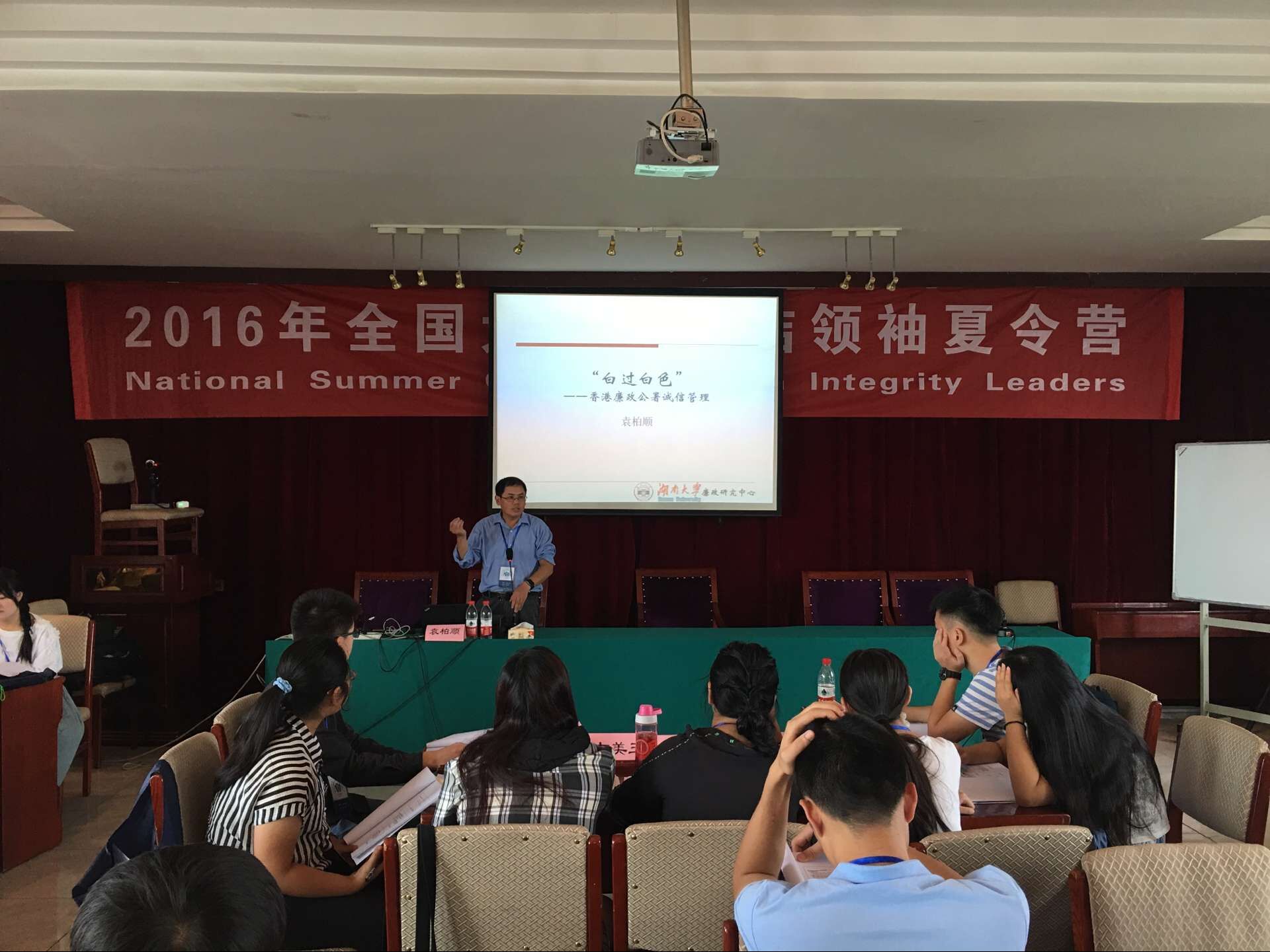 2016年7月8日至14日,2016年全国大学生廉洁领袖夏令营在呼和浩特举行。湖南大学廉政研究中心执行主任、中国管理现代化研究会廉政建设与治理研究专业委员会(以下简称廉政学会)副会长兼秘书长袁柏顺教授出席开营仪式并作讲座。换妻
