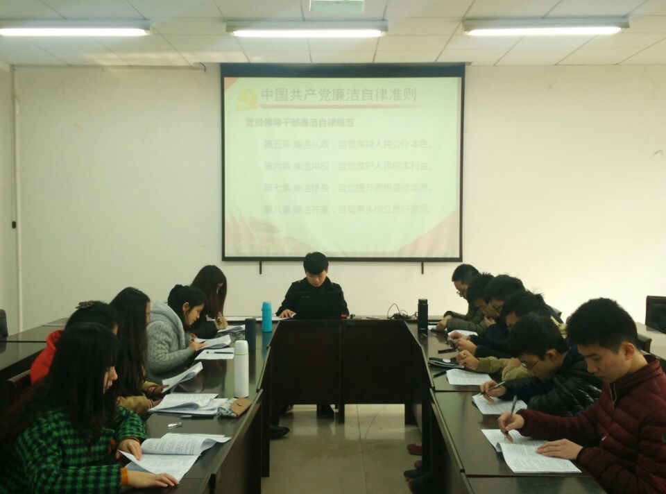 216会议室组织专题学习活动,在认真解读《中国共产党廉洁自律准则》和新修订的《中国共产党纪律处分条例》。的同时还结合十八大以来中纪委查处的各类大案要案讨论了党中央重修修订纪律处分条例的重要意义,通过学习会为学生党员严守政治纪律和政治规矩提供了有力的指引。此外,本科生2014、2015级联合党支部、本科生2012级各党支部也纷纷结合本支部实际开展了主题明确的组织生活会。