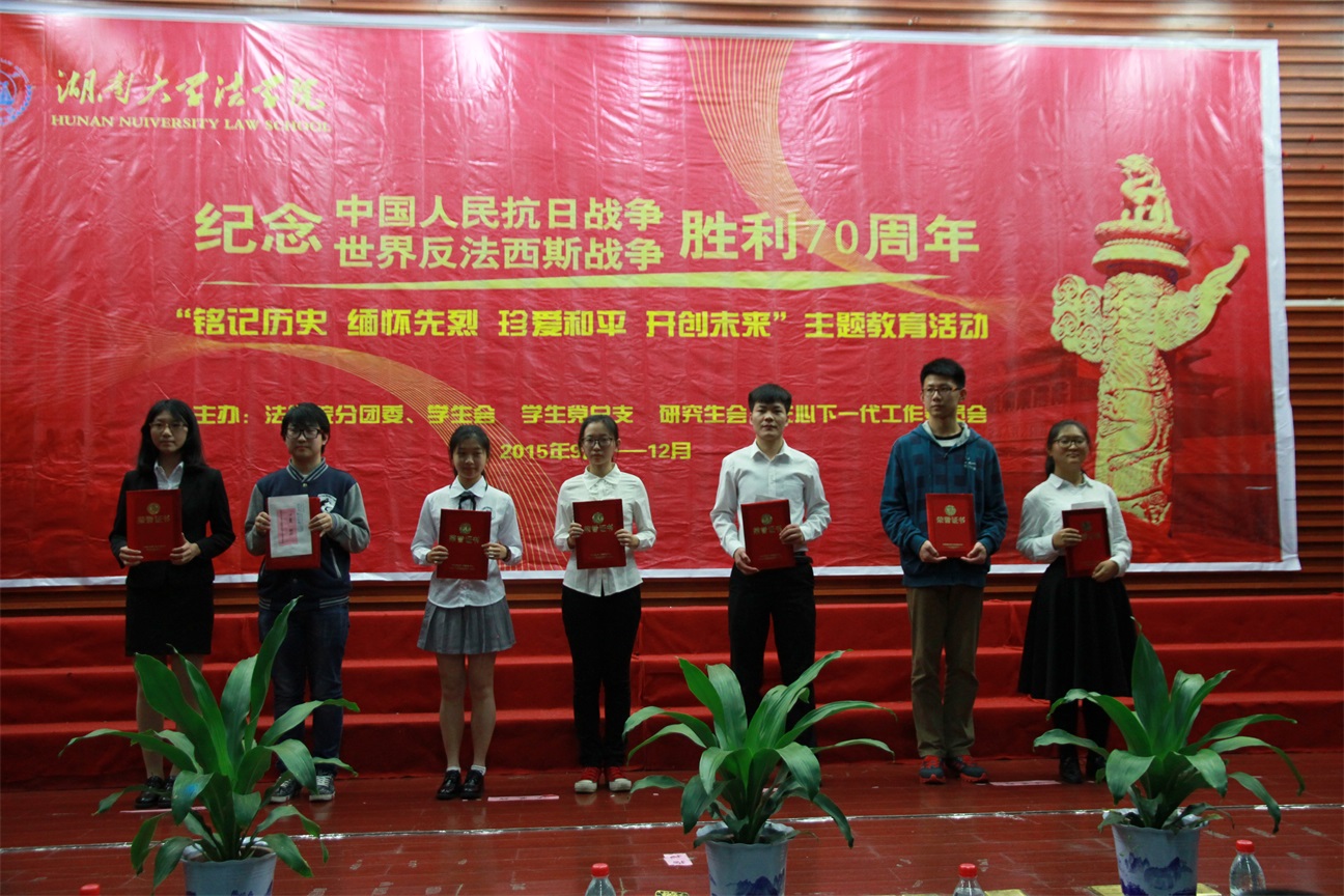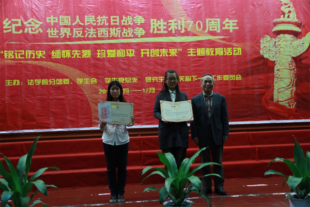 经过激烈角逐,2014级和2015级法二班组成的代表队获得一等奖;2014级和2015级法三班、2014级和2015级法一班、2014级和2015级管二班获得二等奖,2014级和2015级管一班、2014级政治班和2015级法五班、2014级和2015级法四班、研究生会代表队获得三等奖。在欢快的颁奖进行曲中,院长屈茂辉教授、党委书记李连友教授和党委副书记、副院长付蓉芬老师为获奖班级代表颁发了荣誉证书和奖金。