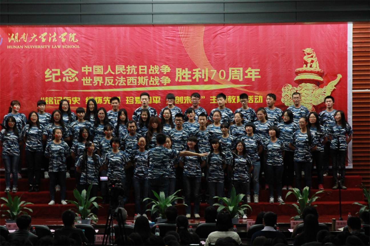 2014级和2015级法学一班演唱歌曲《抗日军政大学校歌》、《中国,中国,鲜红的太阳永不落》