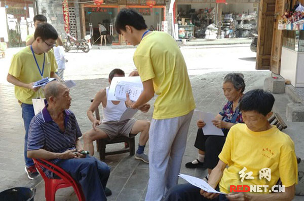 “三下乡”暑期社会实践团队来到湘西州花垣县,开展以“让边城不再是边缘——湘西苗族文化保护调研”、“普法宣传青年行”为主题的志愿服务活动。)
